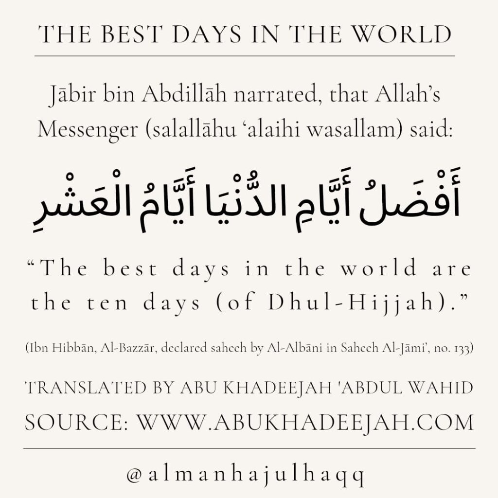 A benefit and reminder about the first ten days of Dhul Hijjah.